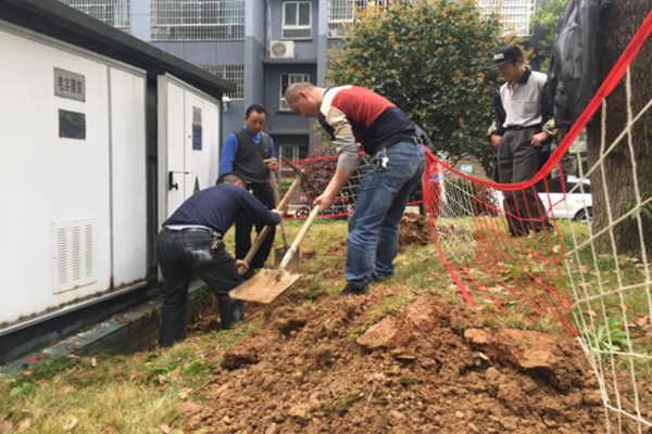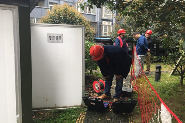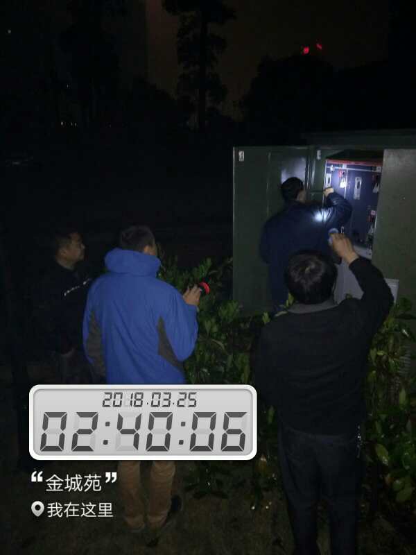 除了志愿者們,小區內另一個地方也在進行緊張的工作,那是金泉物業的工作人員和電力局的技術人員在搶修變電箱和電力線路。近日來的綿綿春雨和潮濕浸染,在昨晚突然造成了小區一部分電力線路的故障,雖已夜深,但工作人員仍堅守崗位,整夜工作在一線。為了能盡快修復電力線路,緩解小區業主的焦慮和解除他們的不便,金泉物業的工作人員耐心向業主們解釋說明,并抓緊組織搶修工作,馬不停蹄,任勞任怨。