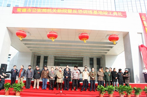 2010年上午10點58分,常德市公安局機關新院暨反恐訓練基地竣工儀式在新大樓前坪準時拉開序幕。中*共湖南省委委員、省公安廳黨委副書記、常務副廳長唐中元,中*共常德市委副書記、市長陳文浩,中*共常德市委副書記曹儒國,常德市人大常委會主任劉本之,常德市政協主席劉春林,市委常委、市政法委書記胡宗清,市委常委歐運崇,市委常委、常務副市長劉小明,市委常委、副市長宋冬春,市委常委、市軍分區司令員董正武,市委常委、市統戰部部長李愛國等領導以及公司董事長張照耀先生出席了儀式。